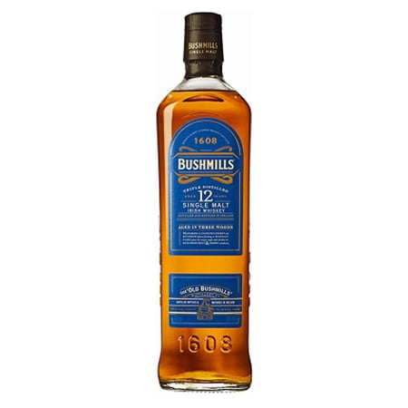 SINGLE MALT 12 YEAR ブッシュミルズ シングルモルト12年 伝統の3回蒸溜を経て、オロロソシェリー樽とバーボン樽で熟成後、マルサラワイン樽でさらに熟成。心地よい甘さと複雑な余韻が特徴です。