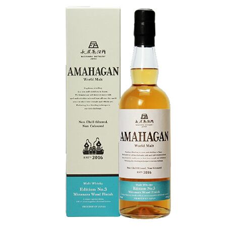 将来のシングルモルトのリリースに向け、ウイスキー造りにとって最も重要な工程の一つである「ブレンド」に焦点を当て生み出されたワールドモルトシリーズ『AMAHAGAN』。第3弾となる今回は、海外のモルトウイスキーに長濱蒸溜所のモルトを絶妙にブレンドした「Edition No.1」をベースに、日本原産で通称「ジャパニーズオーク」とも呼ばれるミズナラのオリエンタルな個性を活かして後熟を施しました。