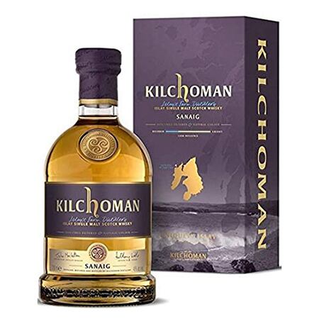 キルホーマン サナイグは、アイラ島のピートをたっぷりと炊き込んだフェノール値50ppmの麦芽を使用した、ヘビーピーテッドタイプのシングルモルトで、バーボンの特色を多くとらえたフラグシップの「マキヤーベイ」とは対照的に、オロロソシェリー樽の特徴を色濃く反映しています。
